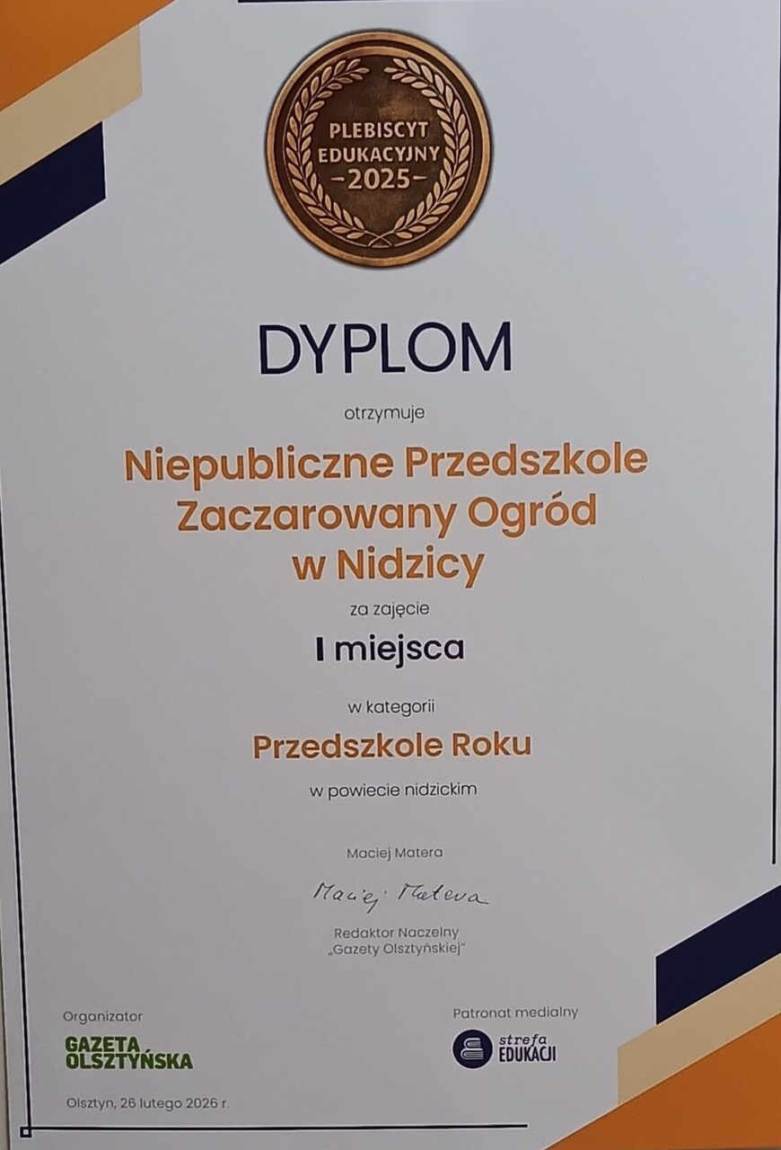 Niepubliczne Przedszkole „Zaczarowany Ogród” w Nidzicy zdobyło I miejsce w kategorii „Przedszkole Roku” w powiecie nidzickim
