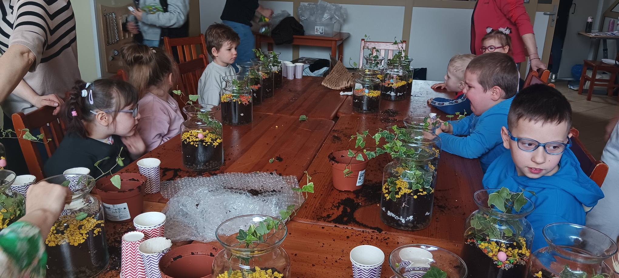 Dzieci samodzielnie komponowały swoje małe, zielone światy. Każdy słoik jest inny i wyjątkowy, tak jak jego mały twórca.